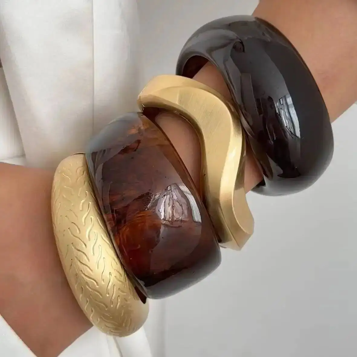 Lacteo 4 Style Creative Exaggerated Irregular Resin Chunky Wide Bangles Women Punk Metal Spring Open Bracelets Steampunk Jewelry $5.87