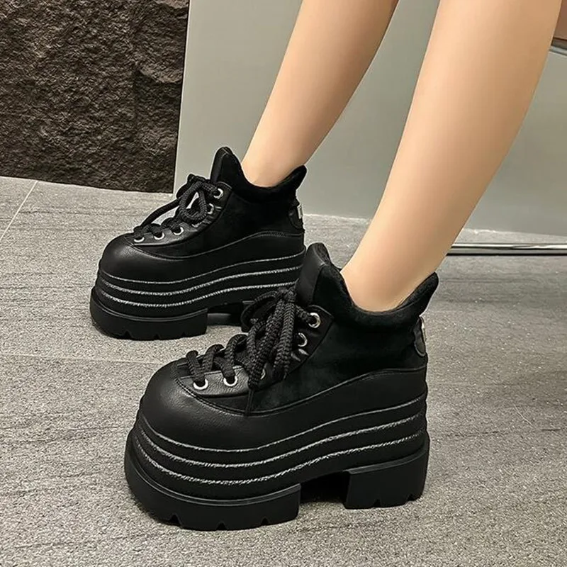 11CM Microfiber Punk Women Boots Platform Wedge Knee High Fashion British Boots ZIP Leather Ankle Spring Synthetic Autumn Shoes $16.19