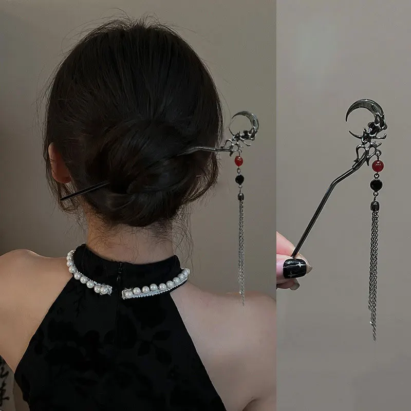 Classic Vintage Hair Stick with Tassel Moon Butterfly Flower Decorative Hair Stick Asian Hair Accessories for Bun Hair Long Hair $4.15