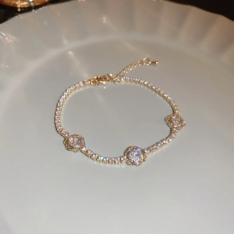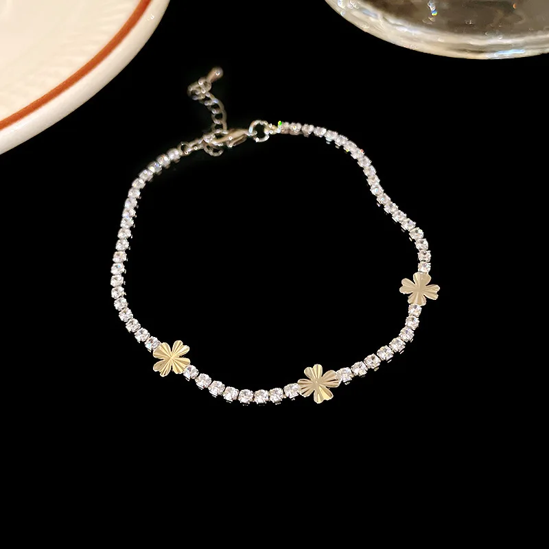 High-End Light Luxury Zircon Four-Petal Flower Bracelet for Women, Fashionable and Versatile Cross-Border Bracelet, Qixi Festival Jewelry, Yiwu Accessories $0.94