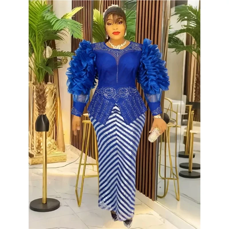 Customized Sequin Plus Size African Party Dresses for Women Fashion Dashiki Ankara Wedding Evening Gown Elegant Christmas Muslim $39.65