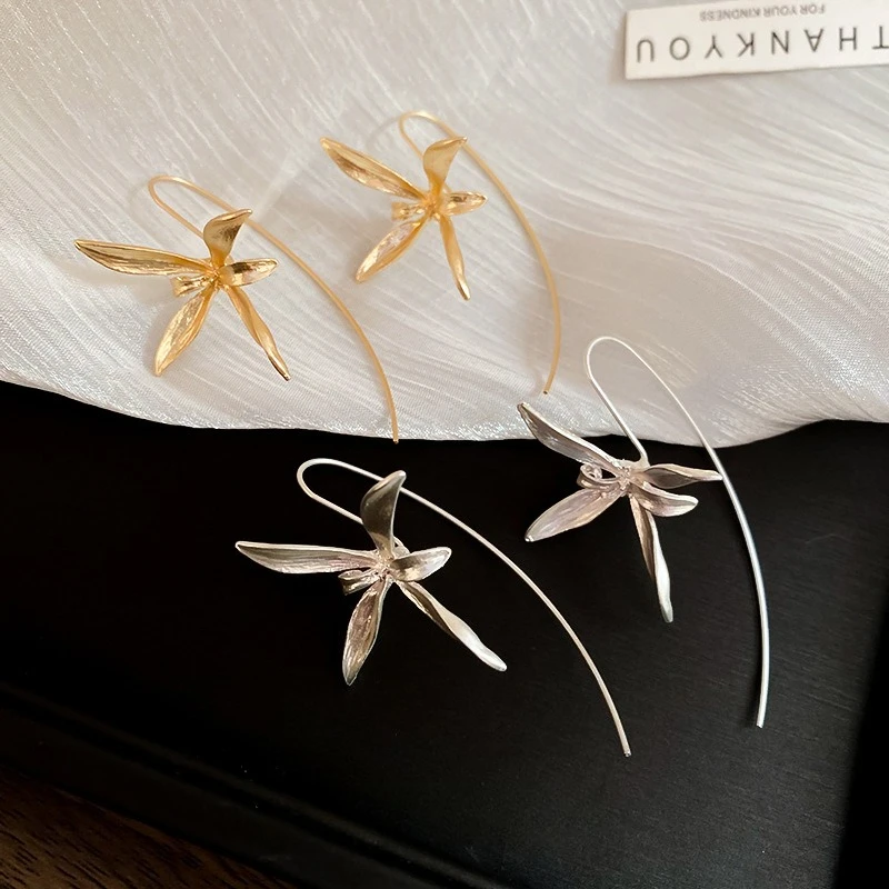 VIVILADY Tibetan Silver Minimalist Flower Exaggeratedly Stud Earrings for Women Cute Plant Fashion Jewelry Personality Accessory $3.58