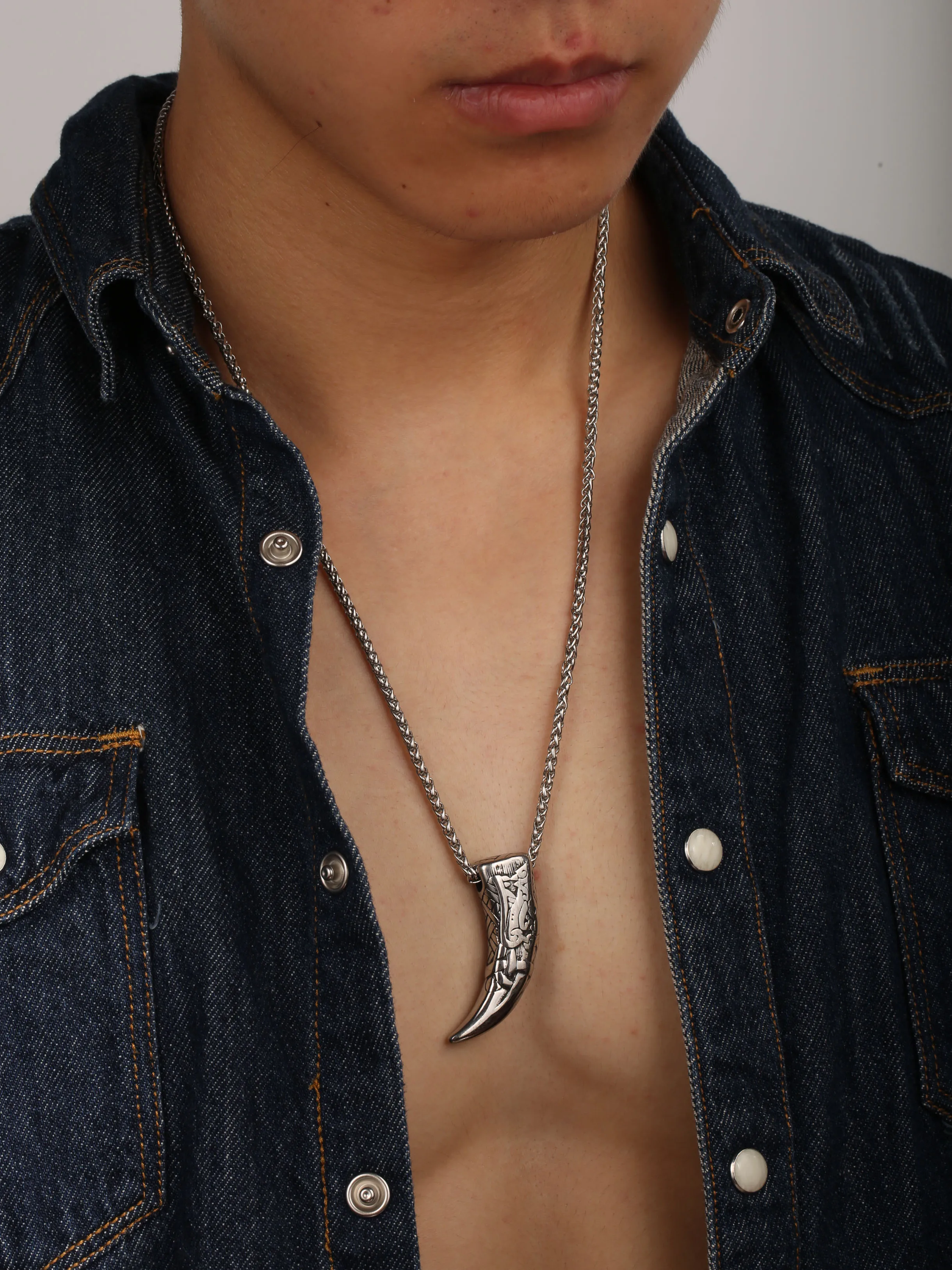 Vintage Titanium Steel Nordic Mythology Spiritual Viking Necklace Men Wolf Teeth Necklace for Men Amulet Jewelry $5.78