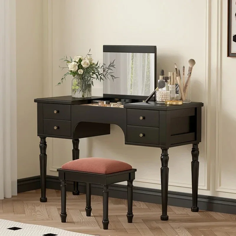 Black Vintage Vanity Table European Mid Century Luxury Makeup Dressing Table Wood Mirror Desk Comoda Pra Quarto Trendy Furniture $2,186.00