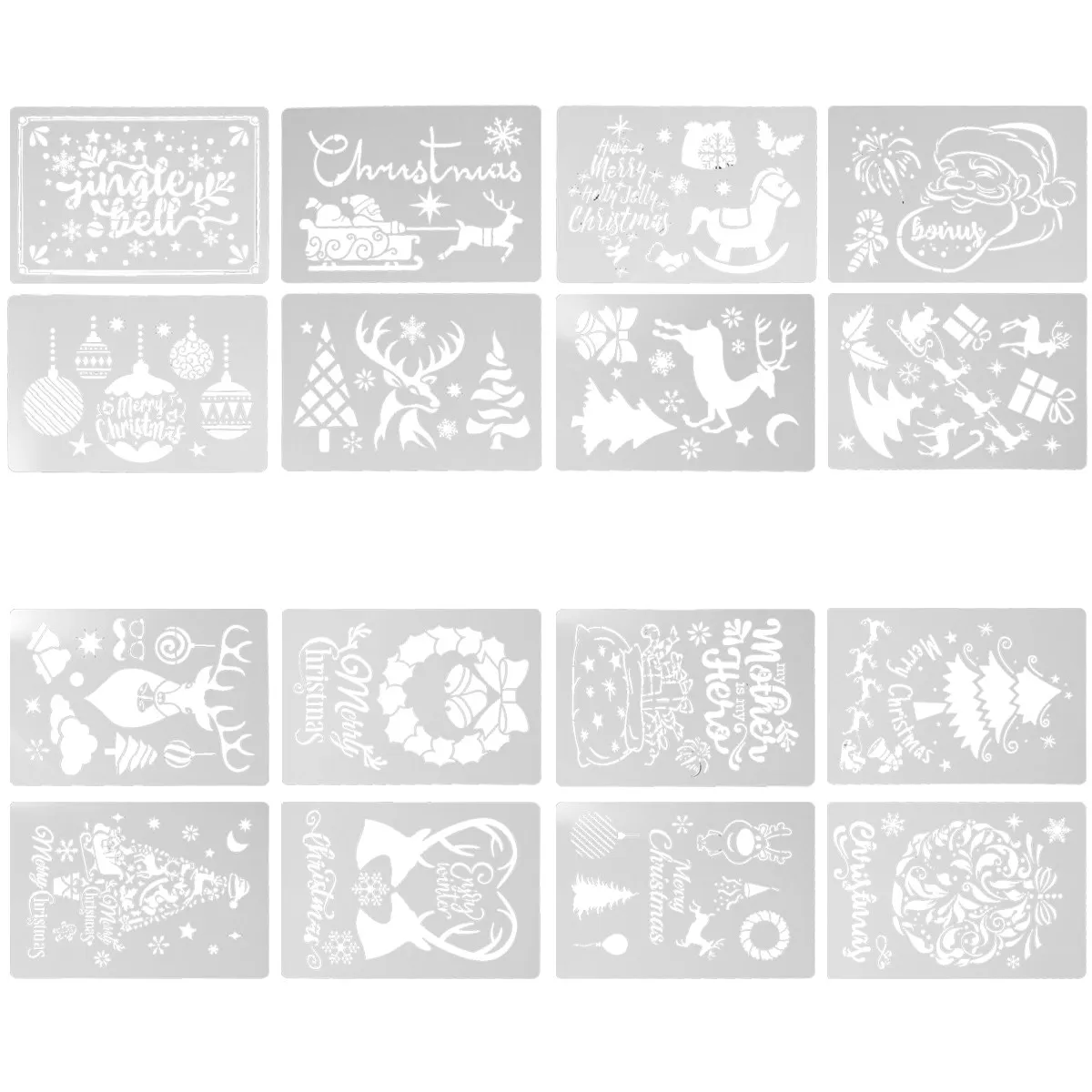 16pcs Painting Templates Reusable Plastic Stencils for Christmas Decor Walls Furniture Art Supplies Drawing Stencils $13.77