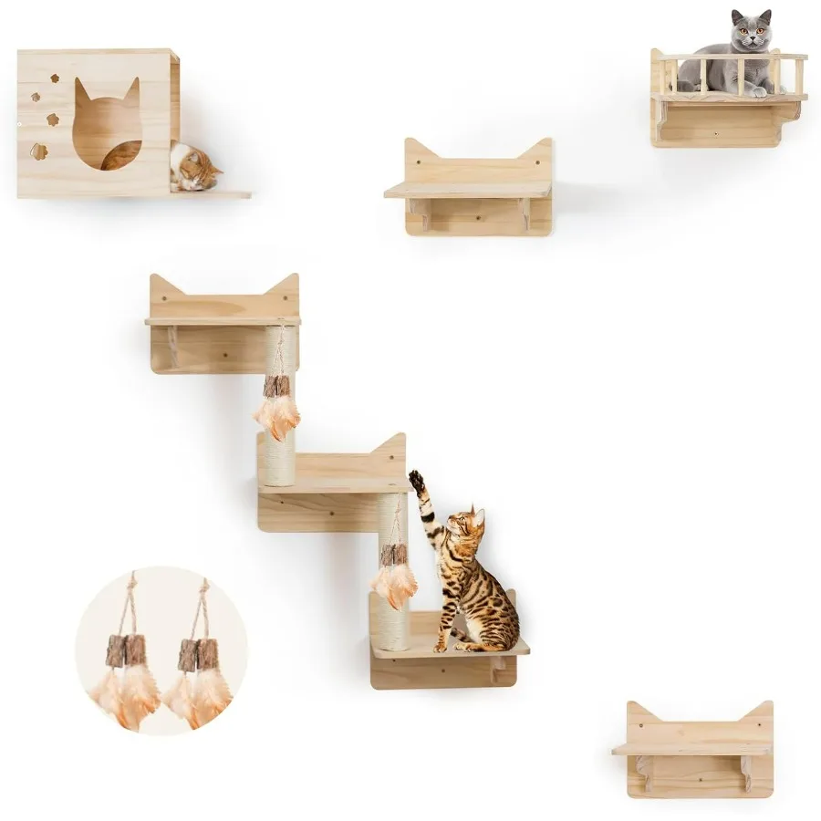 WallMounted Cat Shelves for Large Cats 9Piece Pine Wood Cat Furniture with Scratching Posts Ladder and House Indoor Modern Clim $153.45