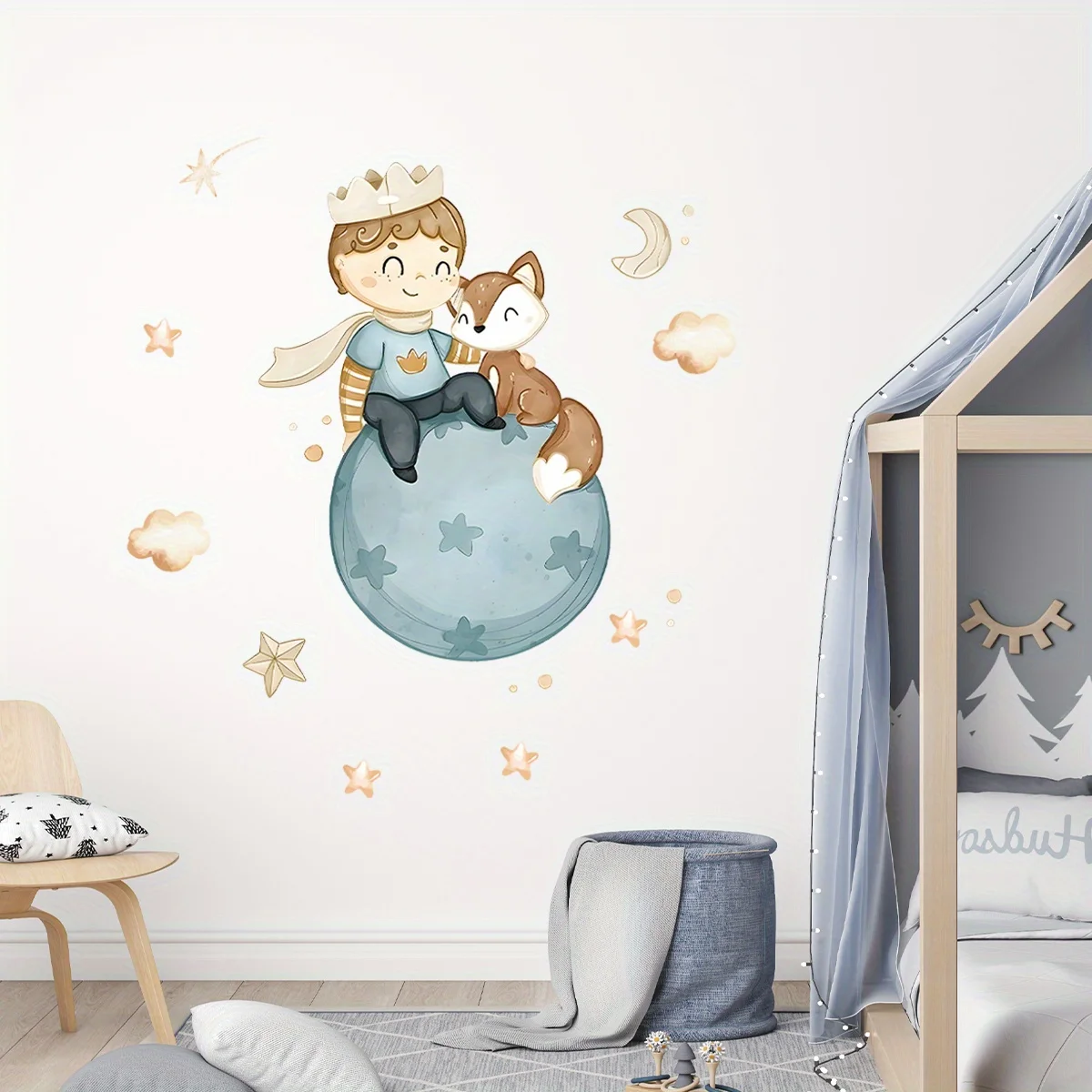 Cartoon Cute Prince Fox Balloon Star Wall Stickers Removable for Bedroom Living Room Nursery Decoration Wall Decals $4.49
