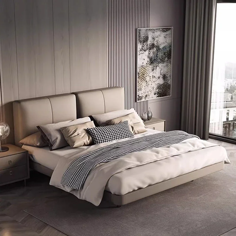 Bedroom Double Bed Leather Sleeping Platform Full Loft Modern Sofa Queen Bed Safe Headboards Letto Matrimoniale Home Furniture $1,966.79