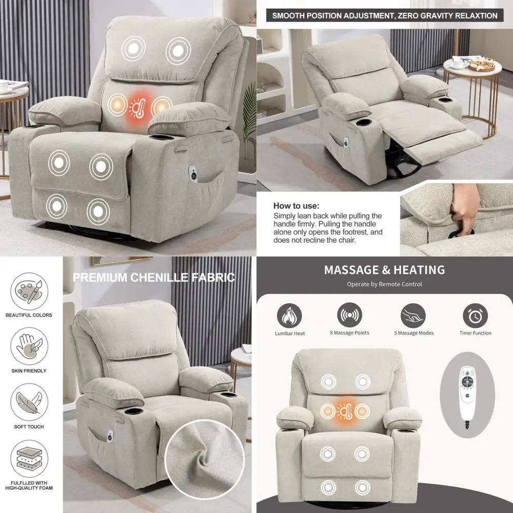 Massage and Heated Rocker Recliner Chair with 360° Swivel and Cup Holders, Remote Control Included for Living Room - Gray $198.74