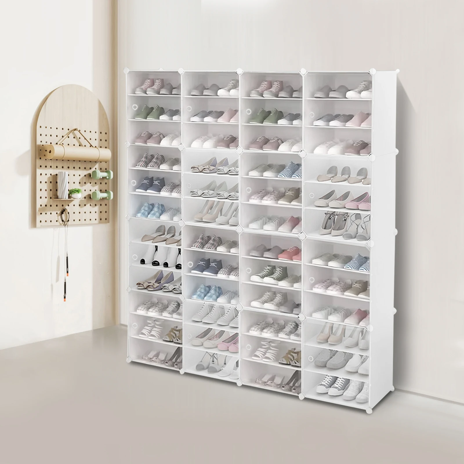BYMAOCAR Foldable Shoe Rack Organizer, 4 X 12-Tiers Stackable 96 Pairs Shoe Storage Cabinets Stand, Dust-Proof Clear Plastic $84.43
