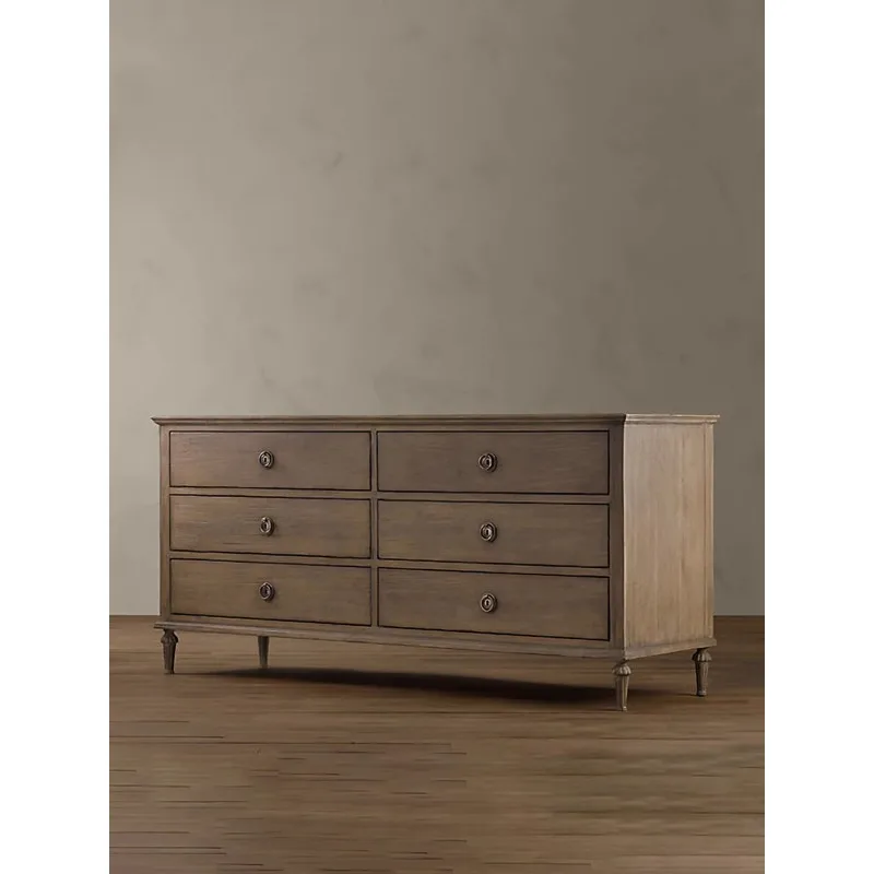 American retro style solid wood storage cabinet with six-drawers dining side locker for bedroom living room Furniture $991.49