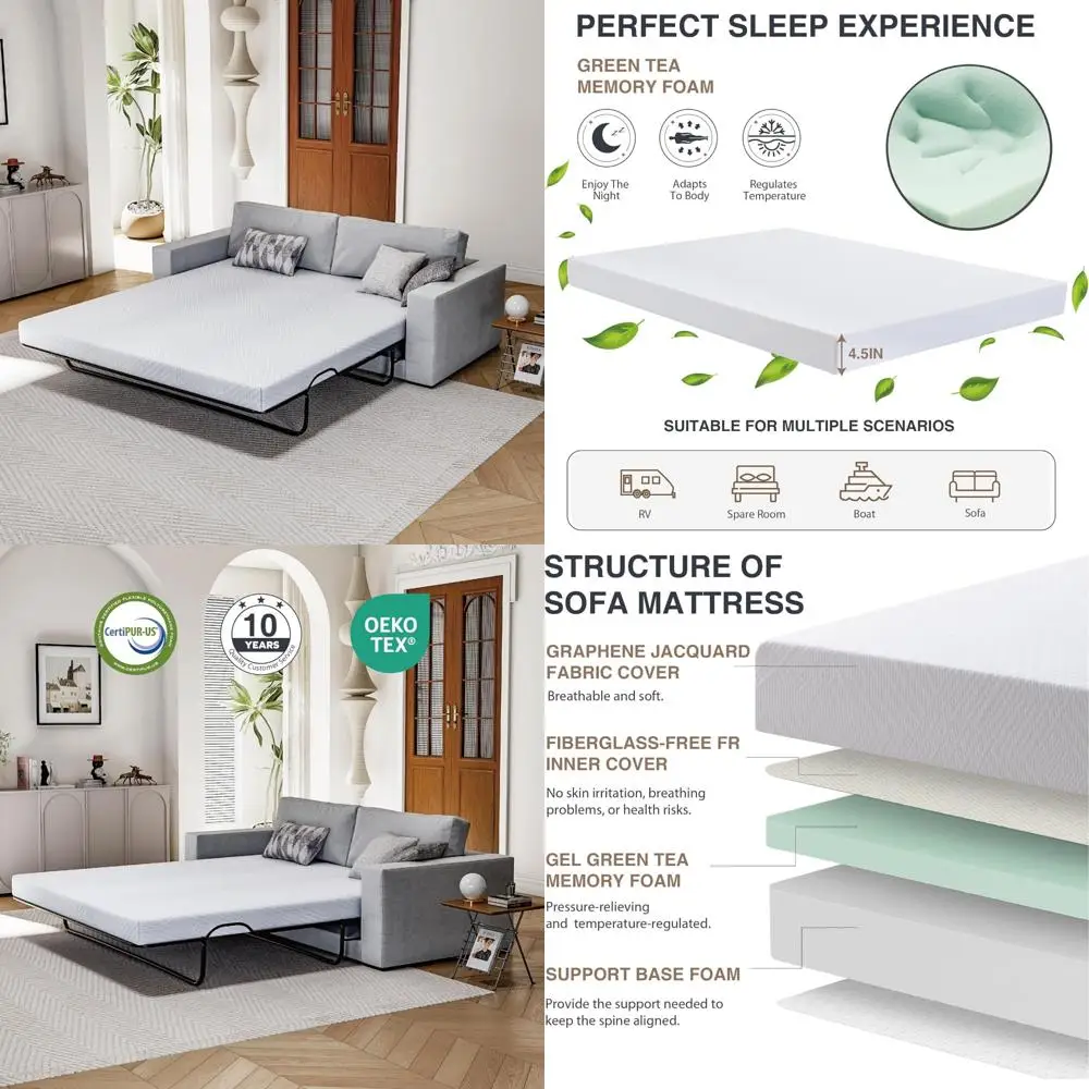 Memory Foam Sofa Bed Mattress, 4.5 Inch, Fiberglass-Free with Washable Cover for Sleeper Sofas and Couch Beds, Full Size $261.73