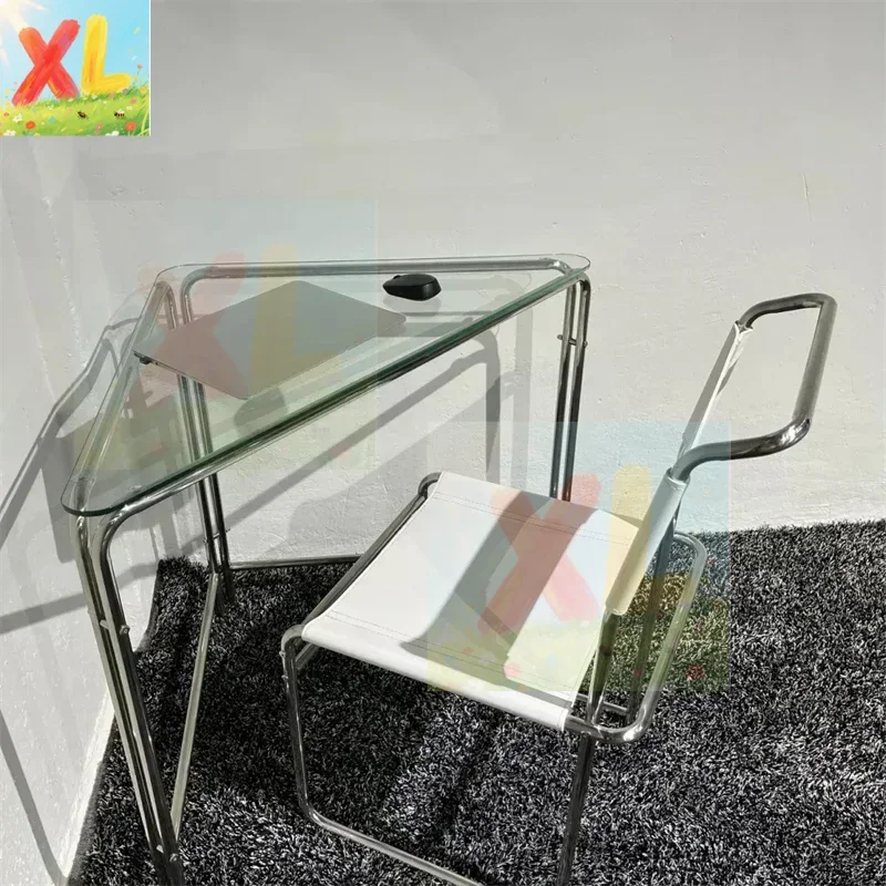 Corner Table Simple Triangle Nook Computer Electroplated Metal Small Apartment Desk Stainless Steel Light Luxury Home Furniture $186.74