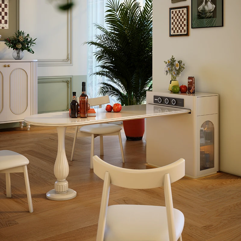 French Travertine Quartz Kitchen Island Extendable Dining Table Multifunctional Compact Luxury Dining Room Furniture FYDT $2,071.89