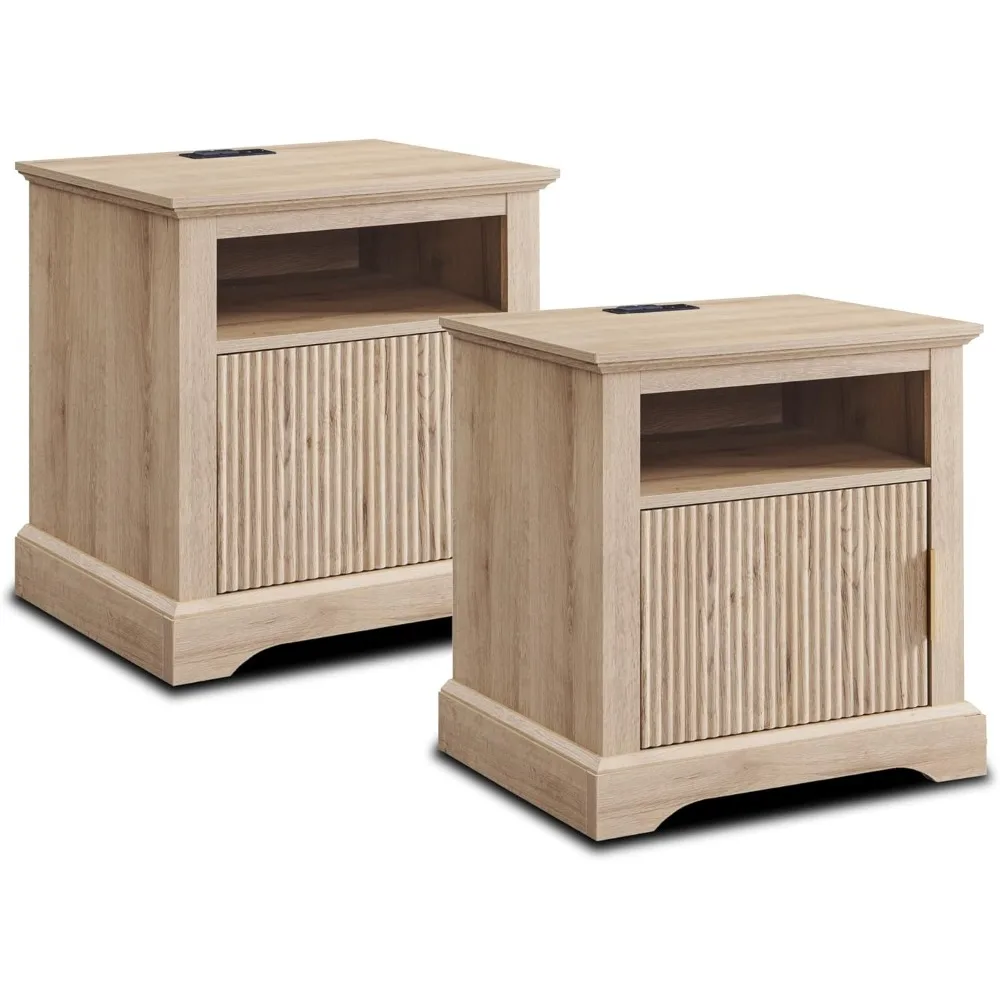 Pair of 22" Contemporary Side Tables with Charging Dock, Wooden Nightstands featuring Open Shelves and USB Ports $210.39
