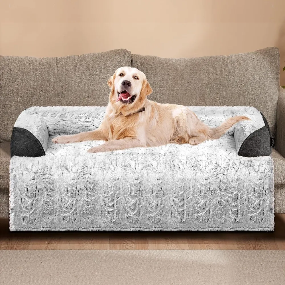 Extra Large Calming Dog Bed for Couch Washable Non-Slip Sofa Mat Fluffy Plush Pet Furniture Protector Cover Grey 45x37 $29.91