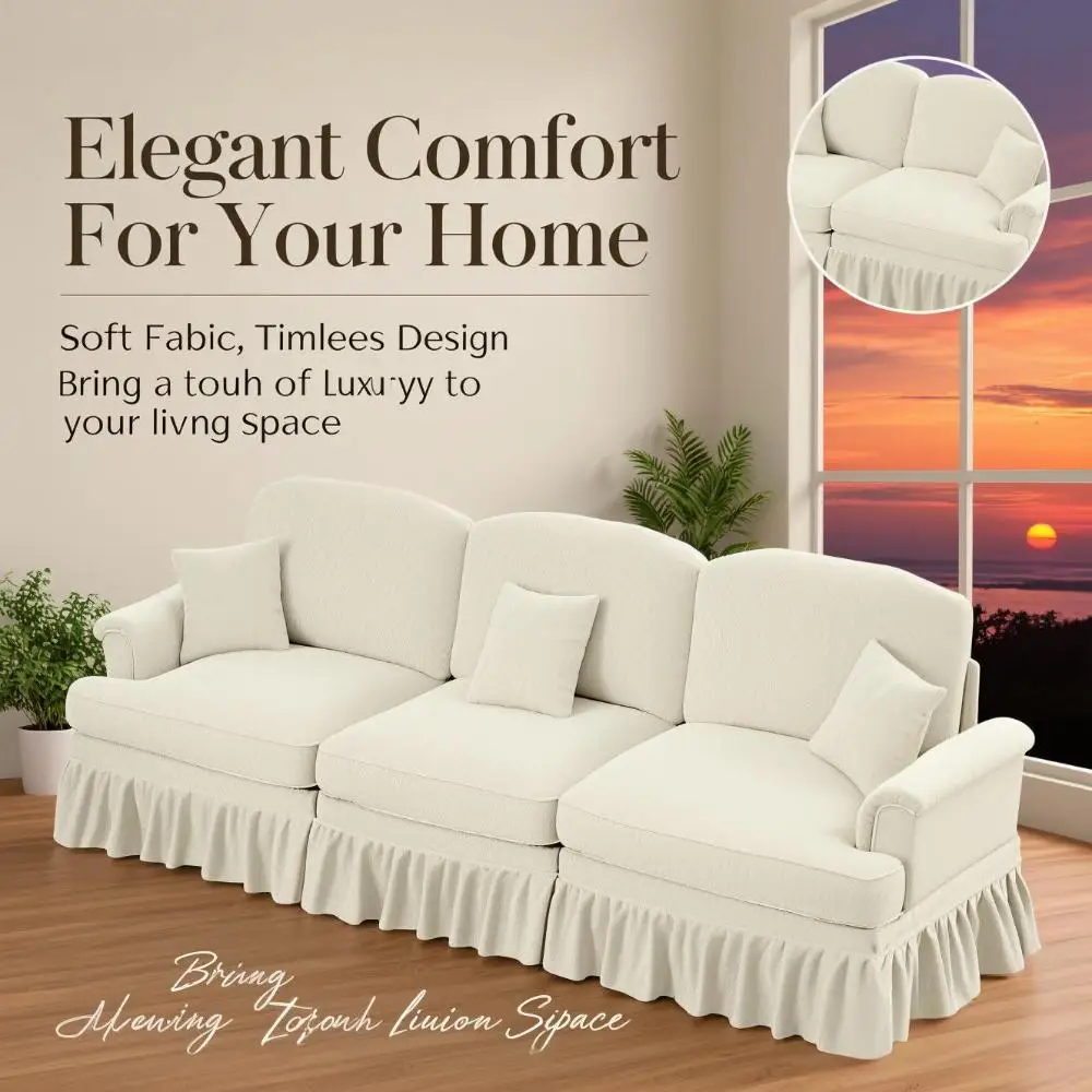Modular L-shaped combination sofa with armrests, detachable ruffled skirt and slender legs, equipped with a movable footstool $1,257.09
