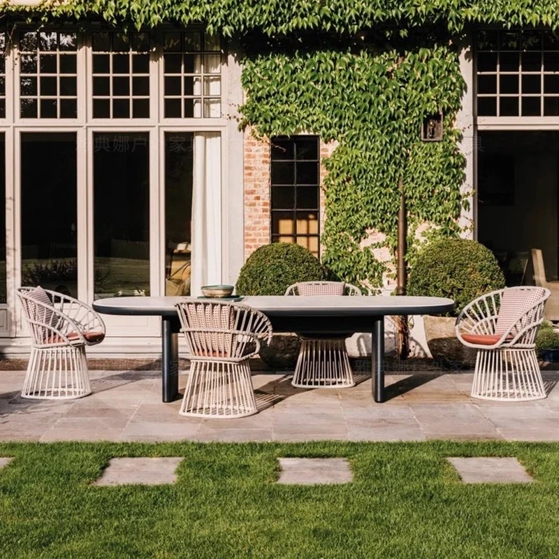 Natural Outdoor Garden Furniture Sets Retro Rattan Waterproof Nordic Garden Furniture Sets Backyard Italian Mueble Decorations $491.09