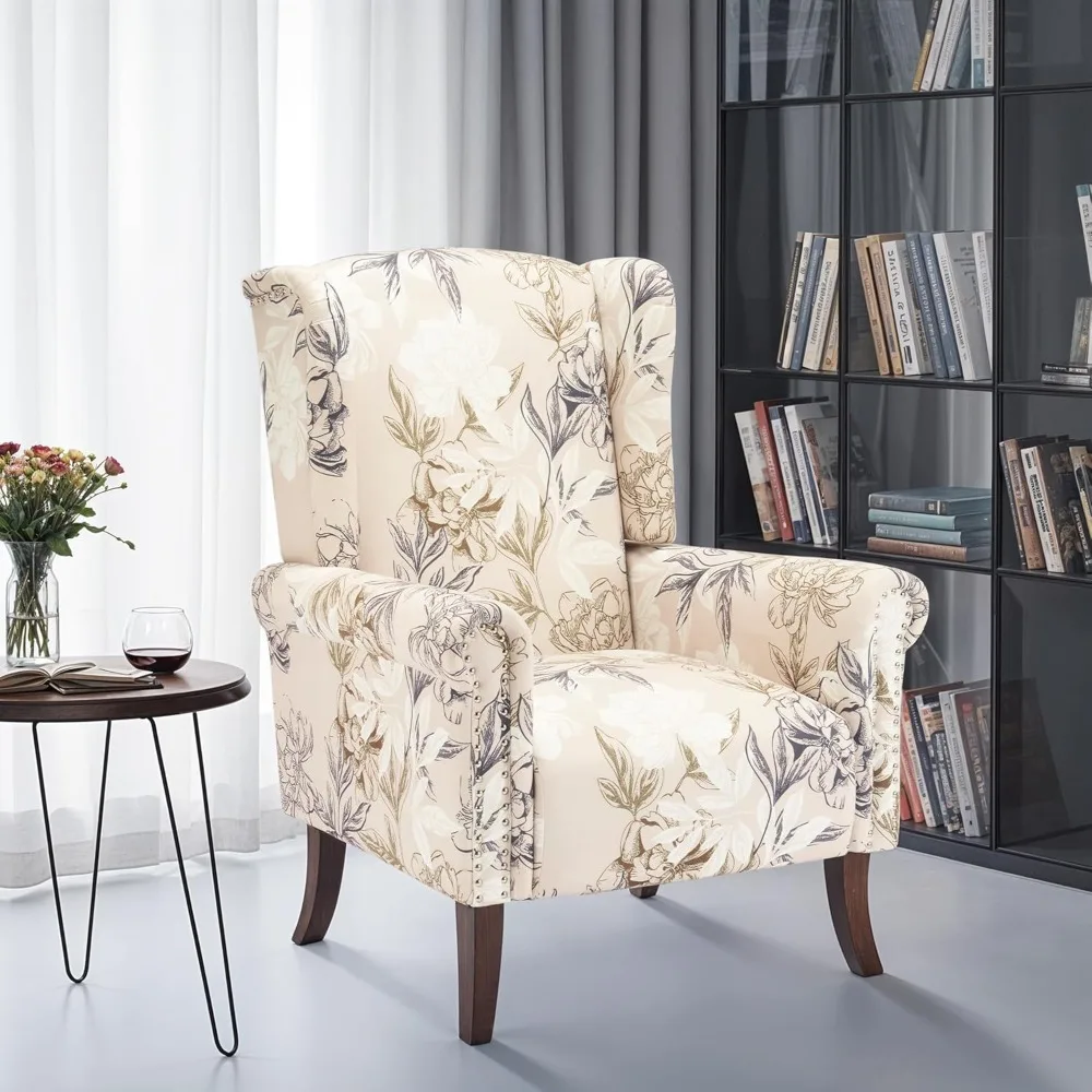 Mid-Century Upholstered Wingback Armchair Club Sofa Chair with Wooden Legs, Living Room Chair $259.56