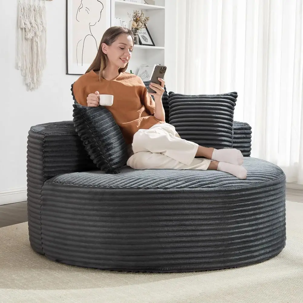 Oversized 55.5 Round Upholstered Chaise Lounge, Corduroy Sofa Bed, Deep Seating, Living Room Furniture, Grey $339.72