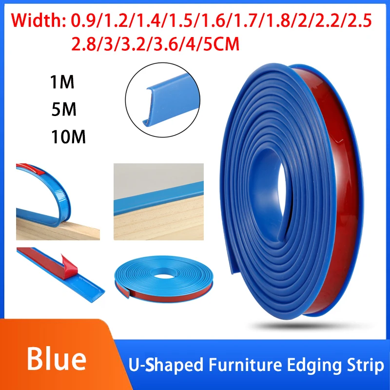 Blue Length: 1/5/10M Width: 0.9~5cm TPE U-Shape Self Adhesive Edging Protector, DIY Furniture Edge Strip $1.16