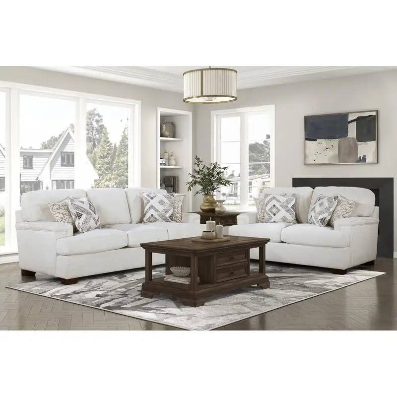 Modern Elegance Sofa Set 2pc Loveseat Cream Chenille Upholstery with Decorative Pillows for Living Room Furniture $3,548.98