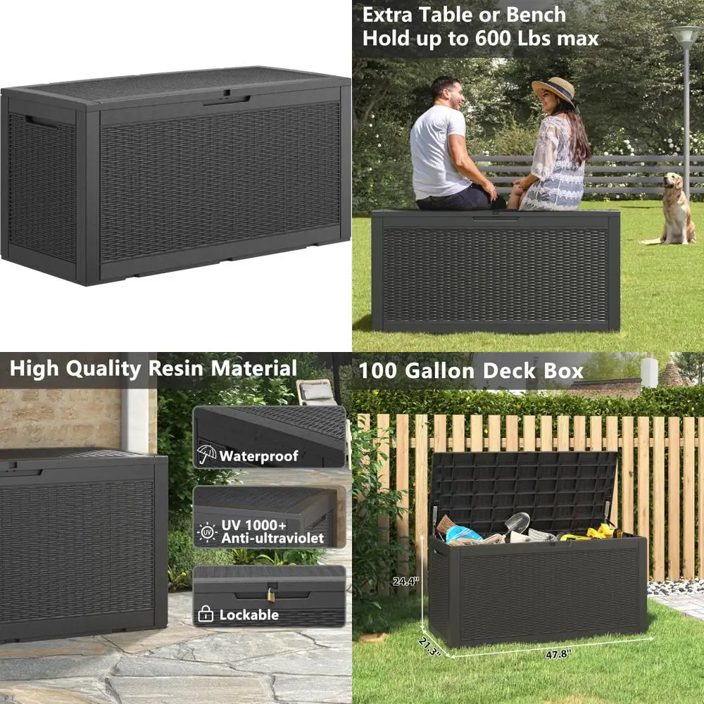 Waterproof Outdoor Storage Container - 100 Gallon Lockable Rattan Deck Box for Patio Furniture Cushions and Pillows $99.67