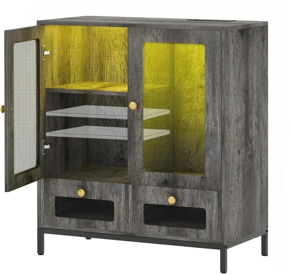 Sideboard Buffet Cabinet with Storage, Wine Bar Cabinet with Power Outlet & LED Light, Kitchen Storage Cabinet with Drawers $302.41