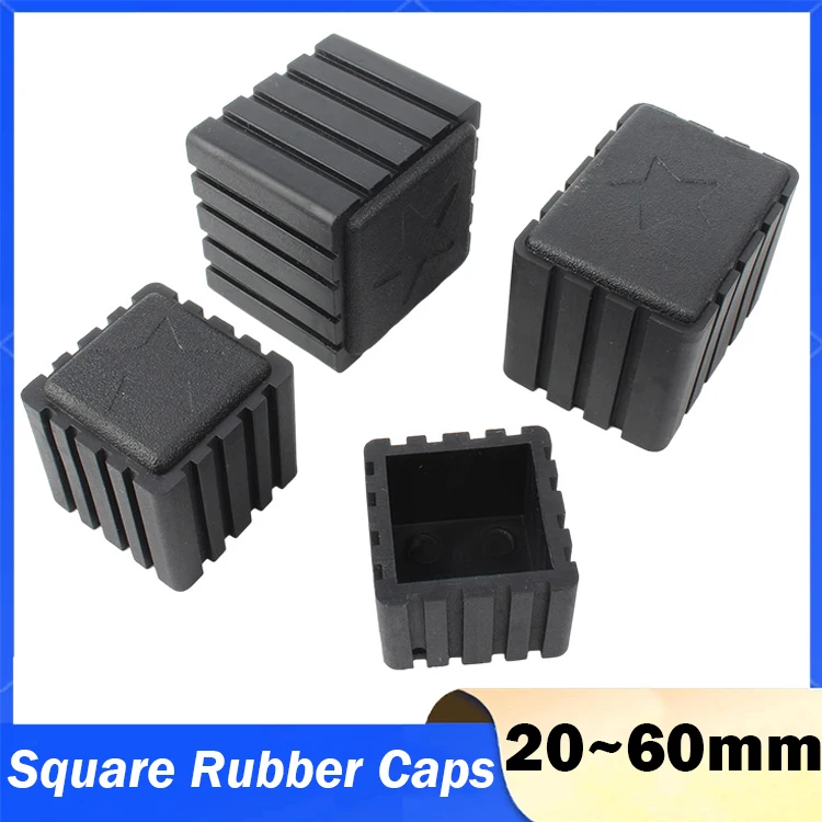 Square Rubber Black Chair Leg Caps Non-slips Table Foot Dust Cover Socks Floor Protector Pads Pipe Plugs Furniture Leveling Feet $1.57