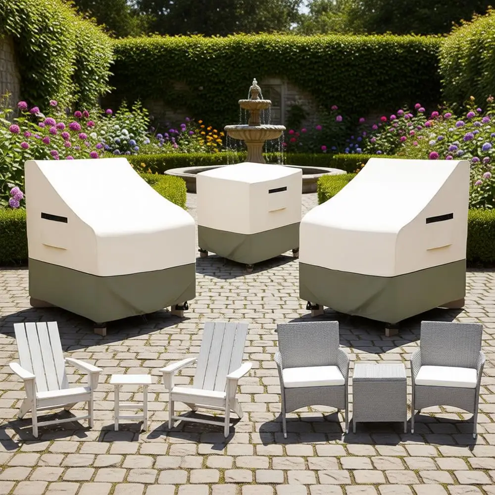3-Piece Outdoor Furniture Cover Set: 2 Chair Covers + 1 Side Table Cover, 600D Waterproof Beige $56.45