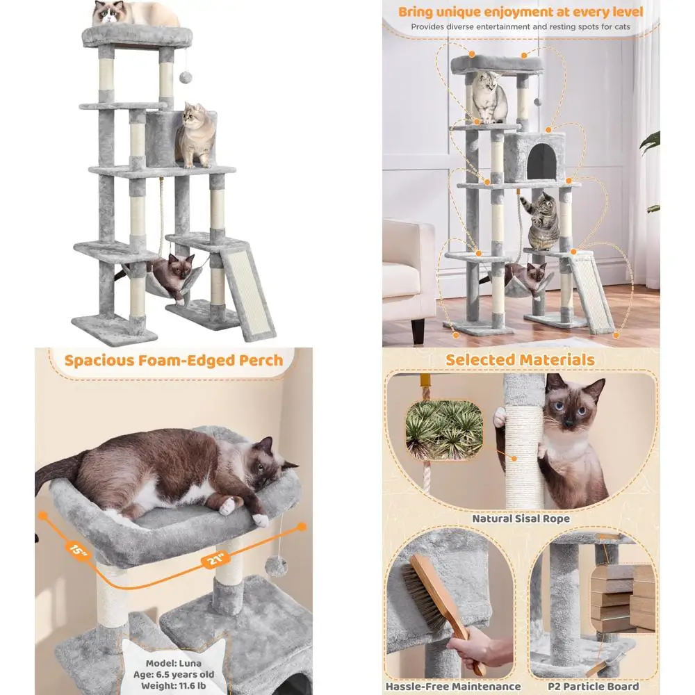 Indoor Multi-Level Cat Tower with Scratching Posts, Large Top Perch, and Hammock for Kittens, 63in Tall Condo Furniture $94.95