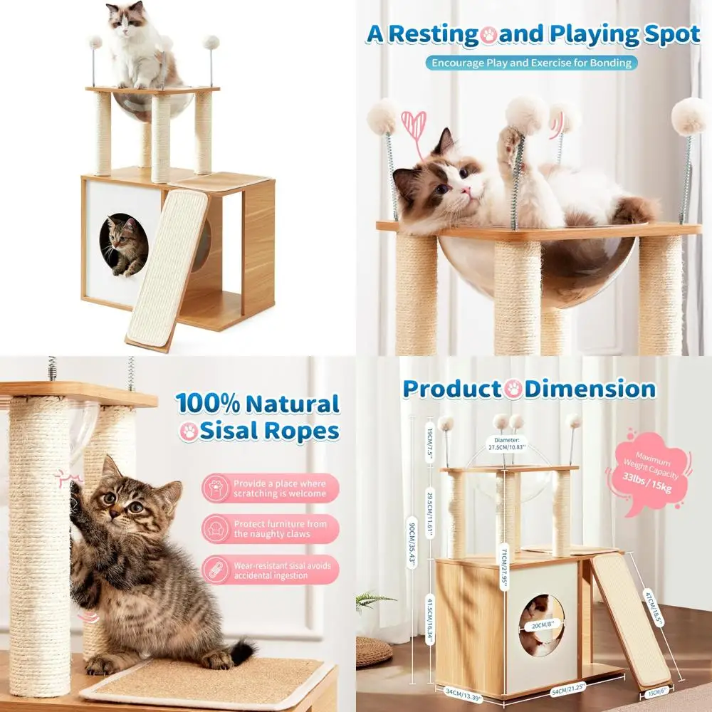 Indoor Cat Tree Modern Tall Tower for Large Cats and Kittens, Heavy Duty Wood Climbing Furniture $62.08
