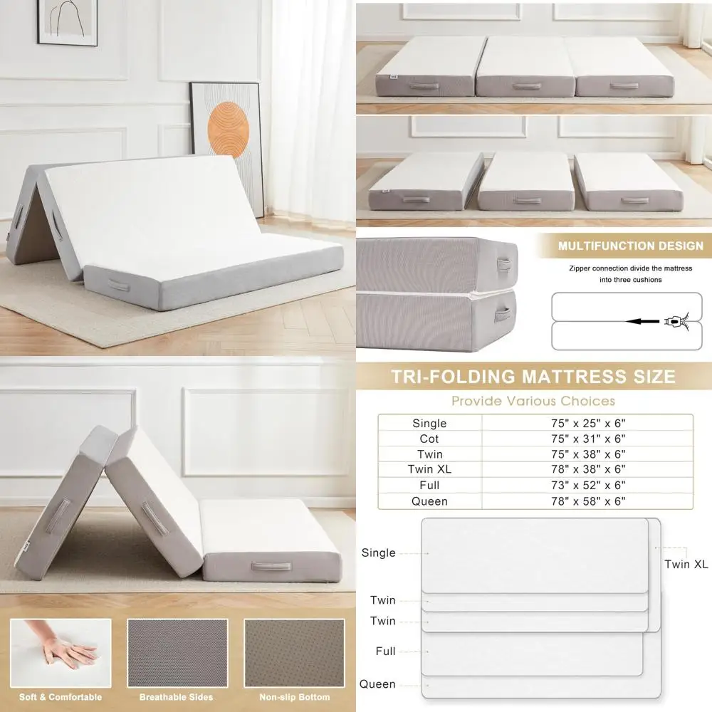 6 Inch Tri-fold Memory Foam Mattress with Breathable Bamboo Fabric Cover - Foldable Guest Bed $342.92