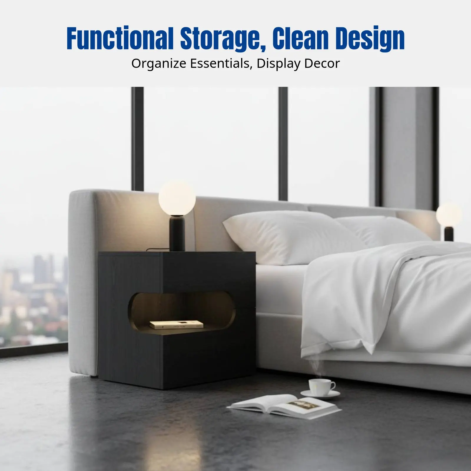 Minimalist Italian Design Bedside Table, Modern Black Nightstand, Engineered Wood, Bedroom and Living Room Furniture $115.23