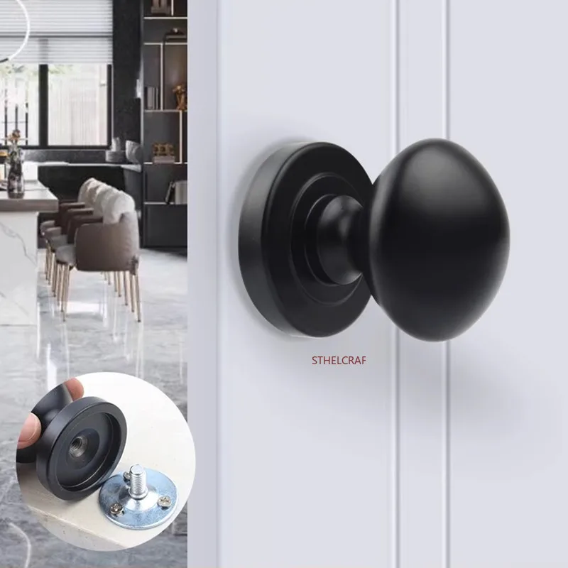 Zinc Alloy Barn Door Handles Indoor Bedroom Wooden Doors Round Single-hole Handles Wardrobe Door Drawer Knobs Furniture Hardware $11.32