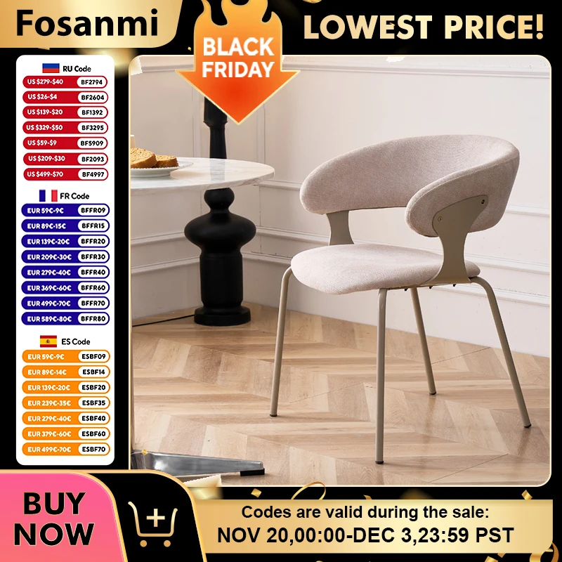 Nordic Breathable Linen Dining Chair Soft Curved Backrest with Steel Frame Comfort Living Room Kitchen Chair Modern Hotel Chairs $1,304.57
