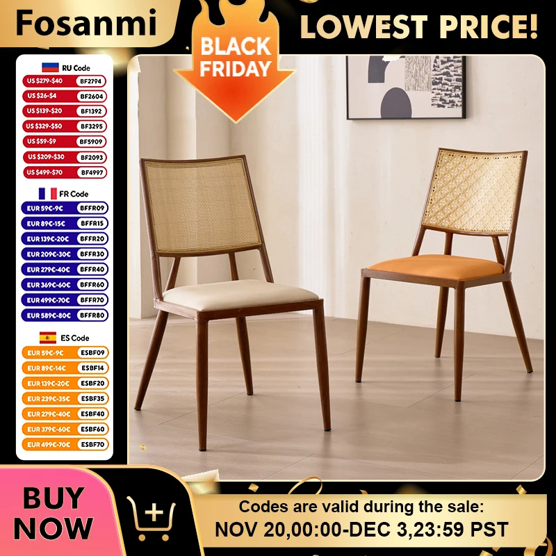 Vintage Rattan Backrest Dining Chair with Iron Frame Comfort Leather Seat Restaurant Chair Modern Home Kitchen Living Room Chair $1,632.34