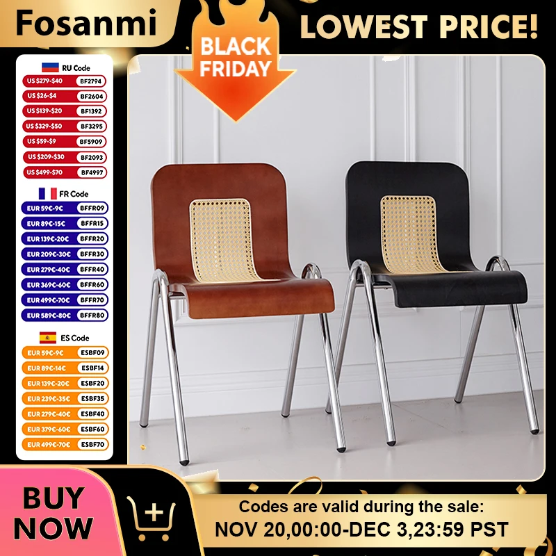Modern Retro Wood Dining Chair with Metal Leg Comfortable Rattan Cafe Restaurant Chair Stylish Dining Room Kitchen Dinner Chairs $606.12