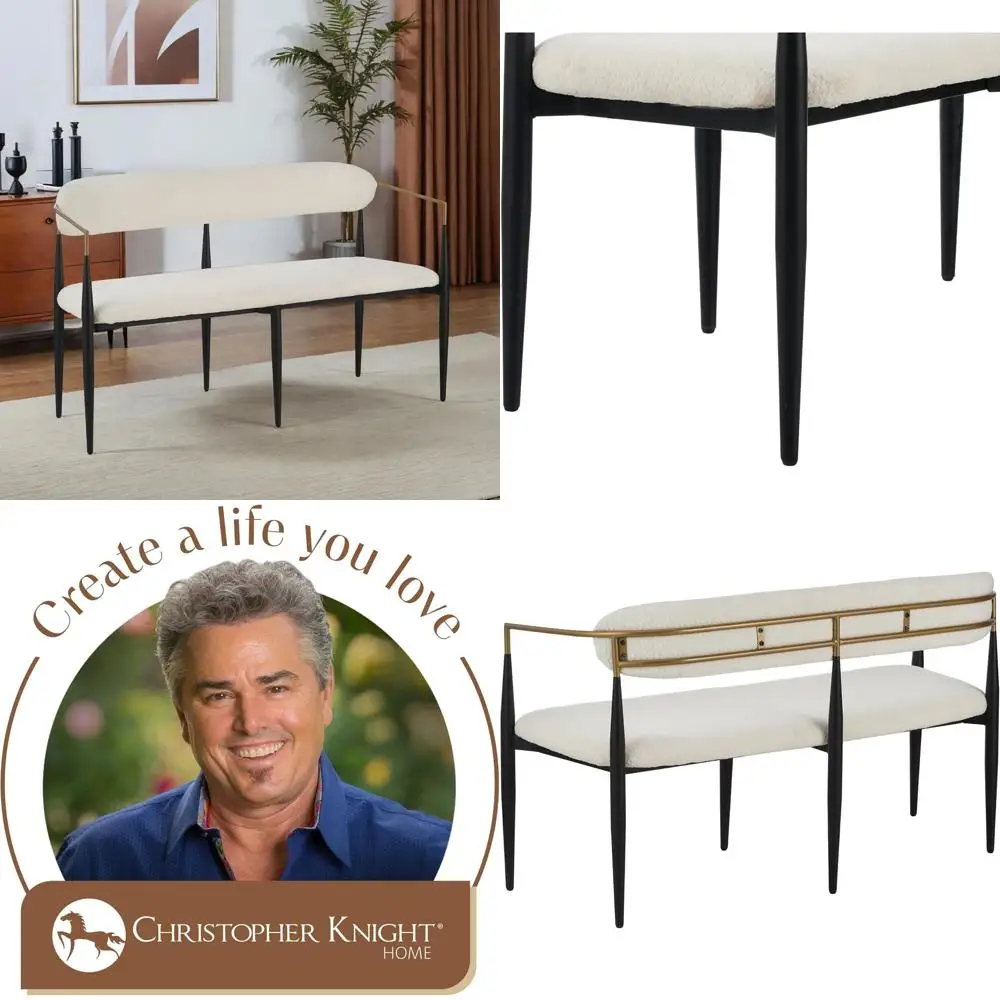 Metal Loveseat, Living Room Upholstered Settee, Curved Open Backrest 2-Seater Sofa, Cozy Couch for Bedroom/Home Office, Black + $368.55