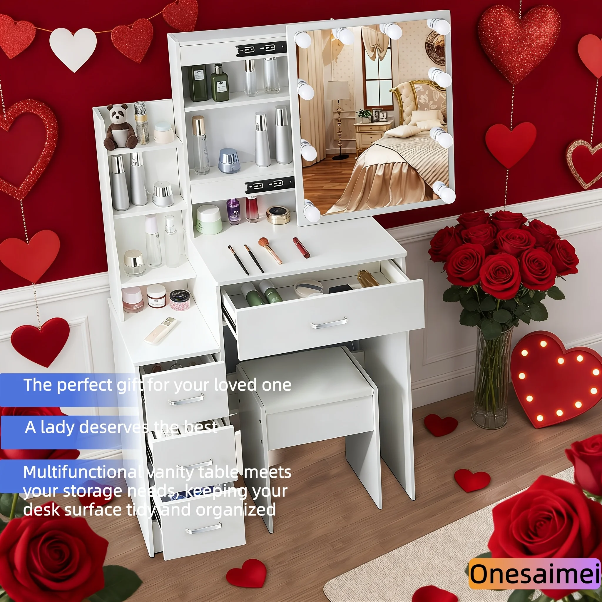 (Festive Gift) Brand-new bedroom dressing table with vanity mirror featuring three colour modes and adjustable brightness $139.82