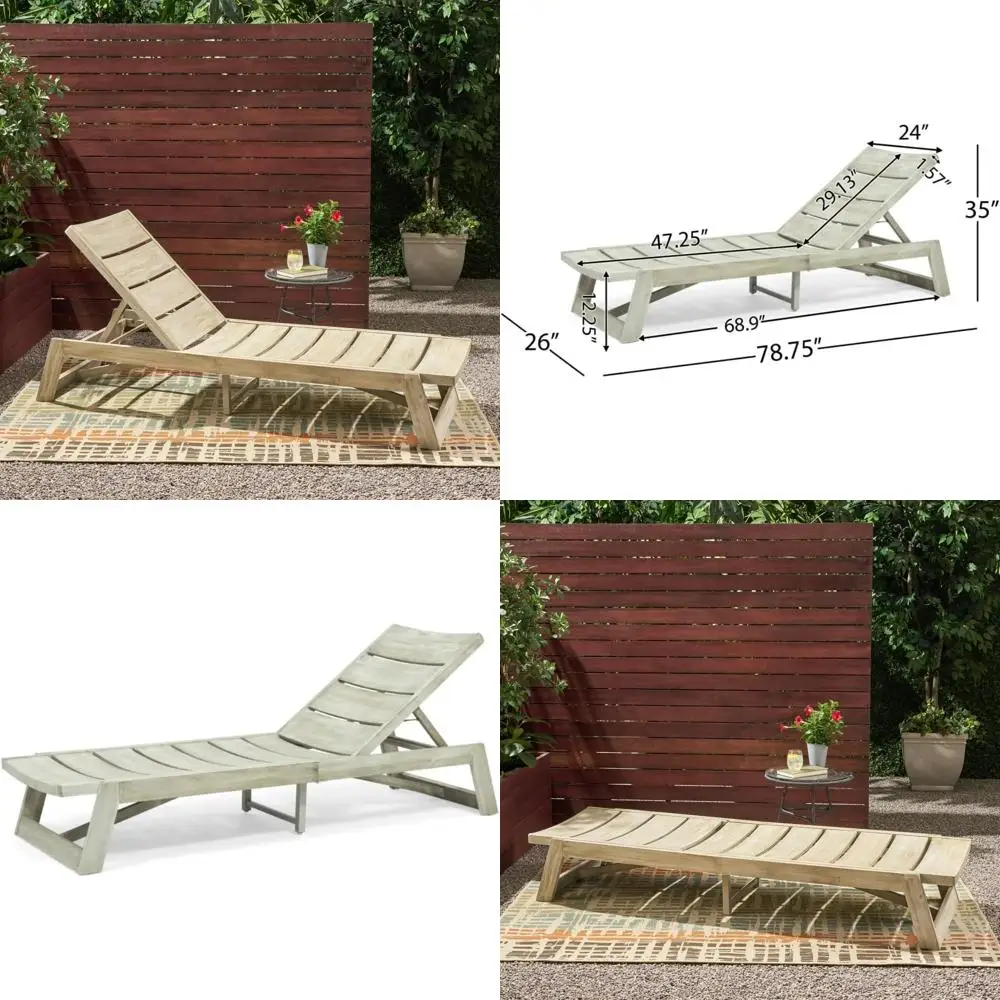 Adjustable Outdoor Acacia Wood Chaise Lounge Chair - Patio, Pool, and Garden Furniture Set in Grey with Wood Finish $235.52