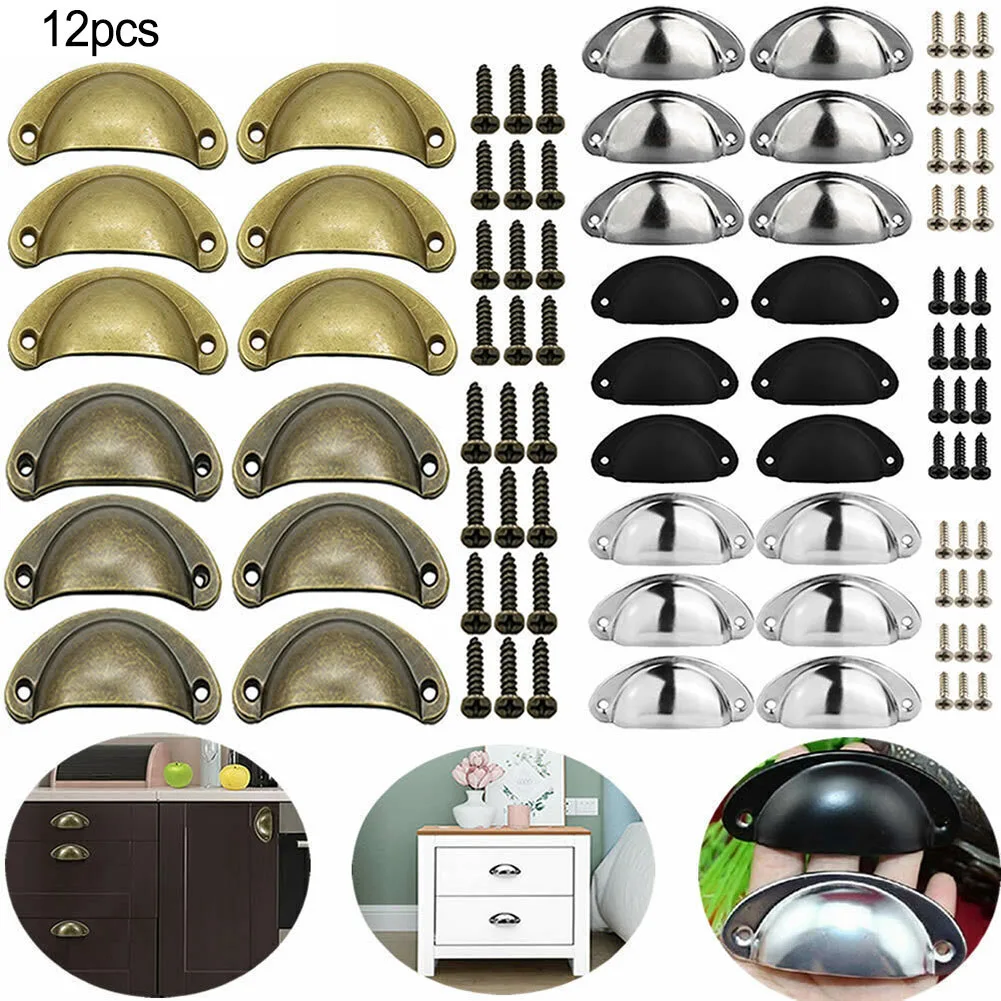 12Pcs Drawer Cabinet Handles Shell Pull Handles Half Moon Kitchen Cupboard Cabinet Door Knobs Vintage Drawer Knobs Hardware $0.84