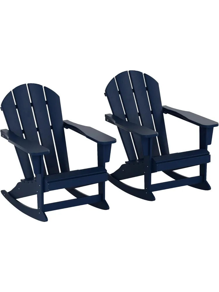 Furniture Patio Rocking Chair 2PCS Outdoor HDPE Adirondack Rocker Chair for Lawn Garden Porch (Navy Blue) $248.22