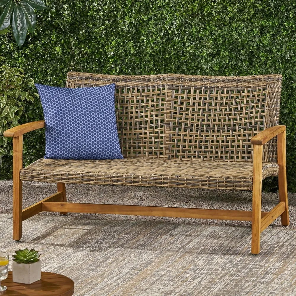 Merax Outdoor Patio Wicker Sofa, Small Casual Couch Loveseat with High Back & Armrest, Acacia Wooden Furniture for Backyard Gard $448.45
