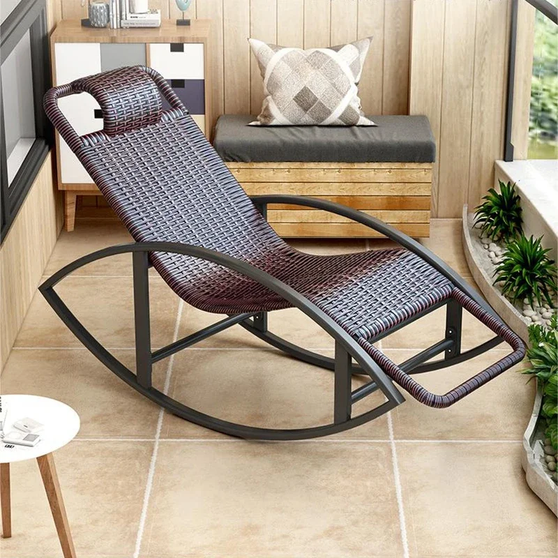 Rocking chair balcony home leisure chair rattan lazy adult elderly recliner sleeping chair single person $443.48