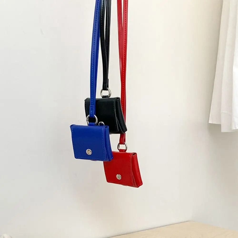 Portable Hanging Neck Headphone Bag PU Leather Square Lanyard Lipstick Bag Multifunctional Card Holder Small Coin Purse Women $2.08