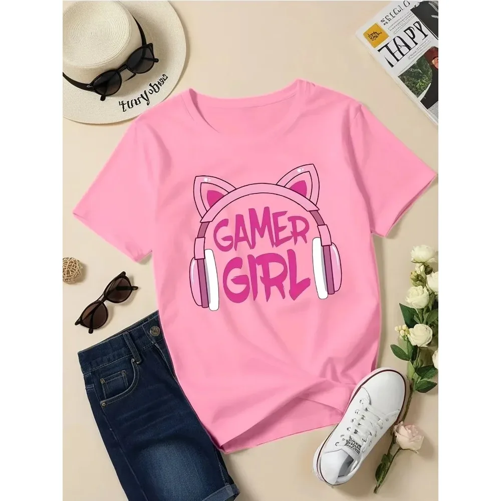 Girls' Summer Clothing Paired with Cute Headphones and Children's T-shirts Suitable for Relieving Summer Heat Without Sweating $5.39