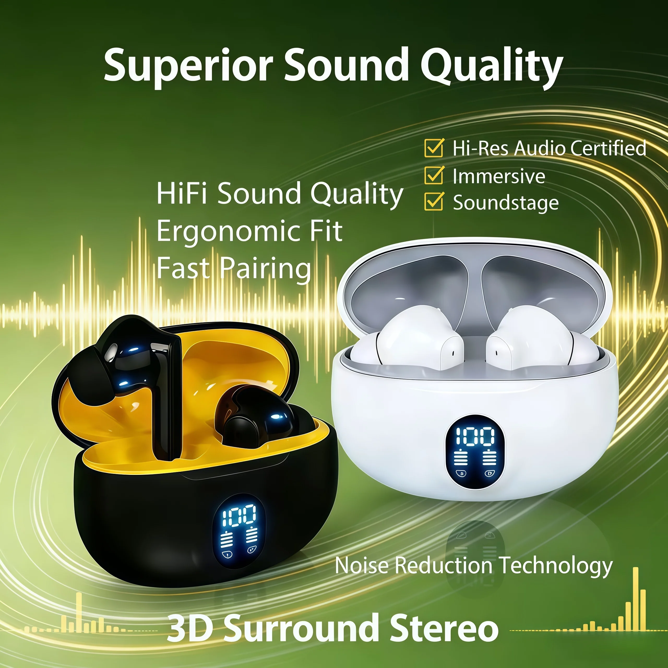 K89/K75 Lavalier Business Bluetooth 5.4 Wireless Headset Talk/Music 20H LCD Digital Display Earphone With Mic Noice Cancelling $18.99