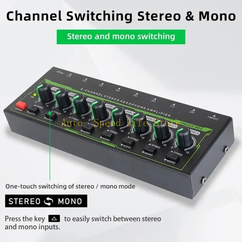 02DA LED Headphone Amplifier 8 Channel Metal Stereo Sound Amplifier Earphone Sound Amplifier EU/US Power Adapter for Guitar $13.91