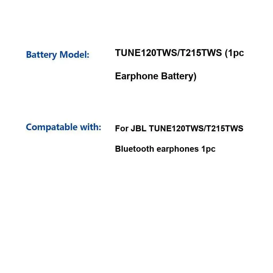True Wireless Bluetooth Headphones Battery 1000Mah For Jbl TUNE120TWS T215TWS Earphones 1Pc Earphone $10.27